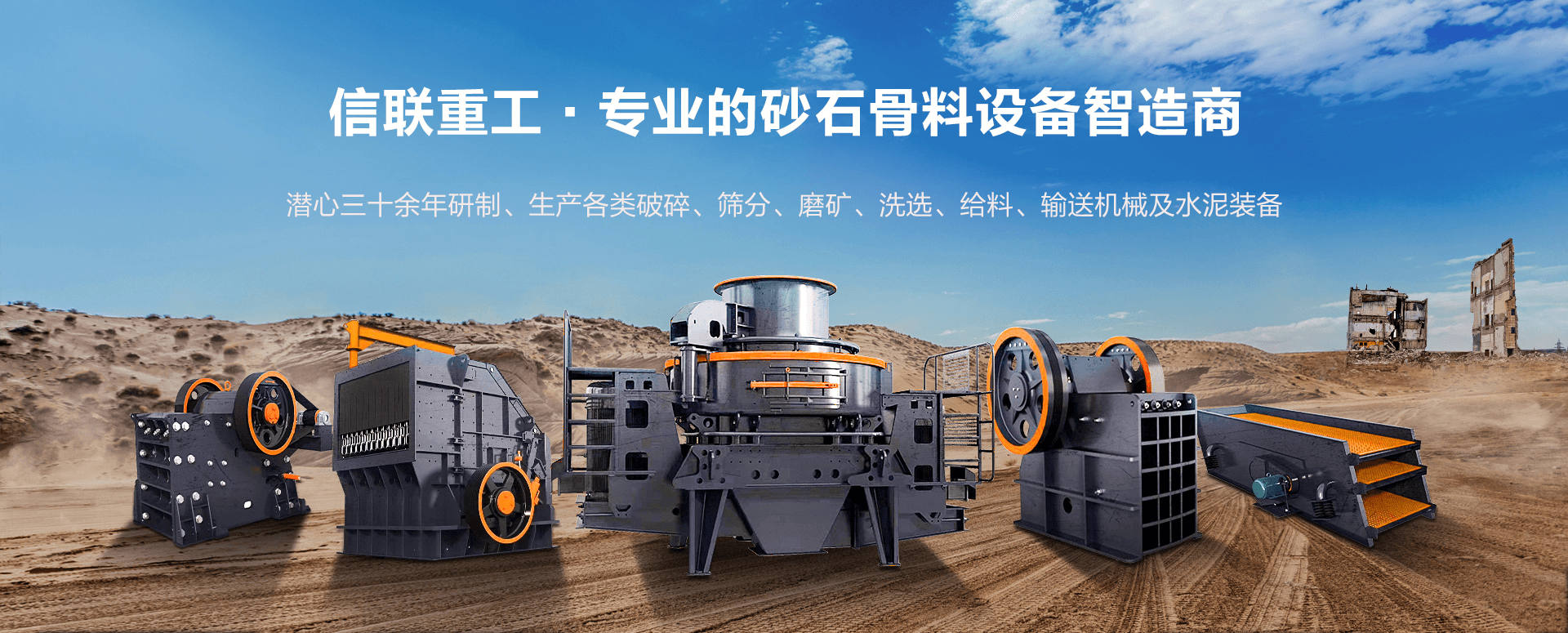 河南信聯(lián)重工-核心產(chǎn)品展示我們只生產(chǎn)先進(jìn)的破碎機(jī)、制砂機(jī)、球磨機(jī)和移動(dòng)破碎站。 精于設(shè)計(jì),嚴(yán)于控制,優(yōu)于服務(wù),努力做好的產(chǎn)品!